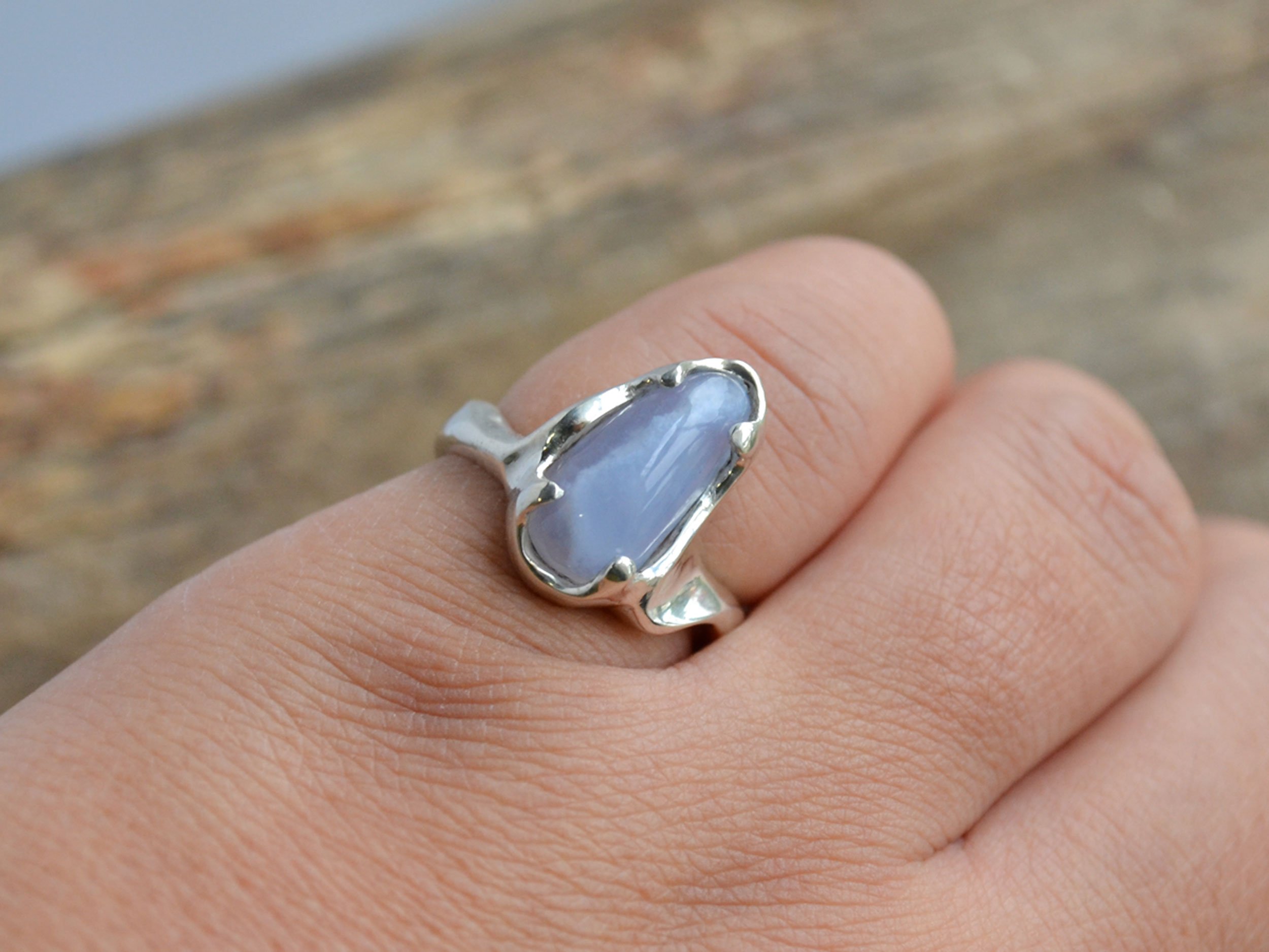 The Ellensburg Blue Agate is a rare stone found only in the region near Ellensburg in Washington State, and is created by the unique geological formations of this area. The Ellensburg Blue is more than a 7 on the hardness scale, making it ideal for jewelry. Our jewelry is inspired by this unique stone and each piece is designed around the beauty of the gemstone.